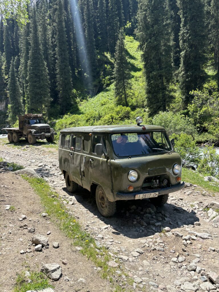 Niespotykanym środkiem motoryzacyjnym wciąż mającym się dobrze w Kirgistanie jest BUCHANKA! Te kilkudziesięcioletnie vany, niegdyś służące w służbie zdrowia jako karetki, po dziś dzień sprawdzają się jako transport w wysokich górach. Jeśli wędrowcy zmęczą się nóżki bądź poobcierają stopy, można na szlaku złapać buchankę:) Przeżycia się niezapomniane. My miałyśmy okazję przejechać się nią w Altyn Arashan, kiedy burza pokrzyżowała nam zjazd w dół konno. Buchanka zaliczona oraz w gratisie emocje jak na dobrym wesołym miasteczku.