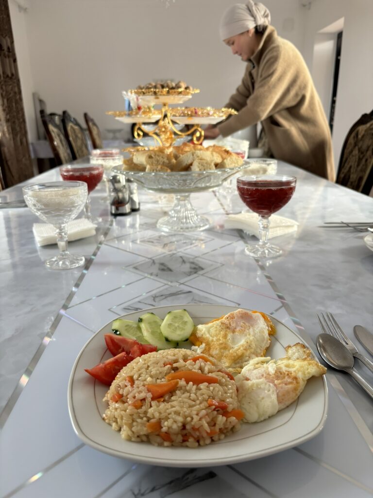Bazę hotelową w Kirgistanie stanowią przede wszystkim pensjonaty (bardzo często rodzinne), agroturystyka oraz oczywiście JURTY! Zdarzają się także hostele. Ceny za noclegi są bardzo przystępne (pokój 2os. ze śniadaniem to koszt ok. 60-80 zł), a bardzo często w ofercie jest wliczone także śniadanie. My spałyśmy w rodzinnych pensjonatach i trzy noce spędziłyśmy w jurcie.